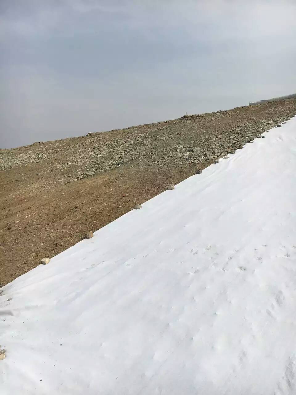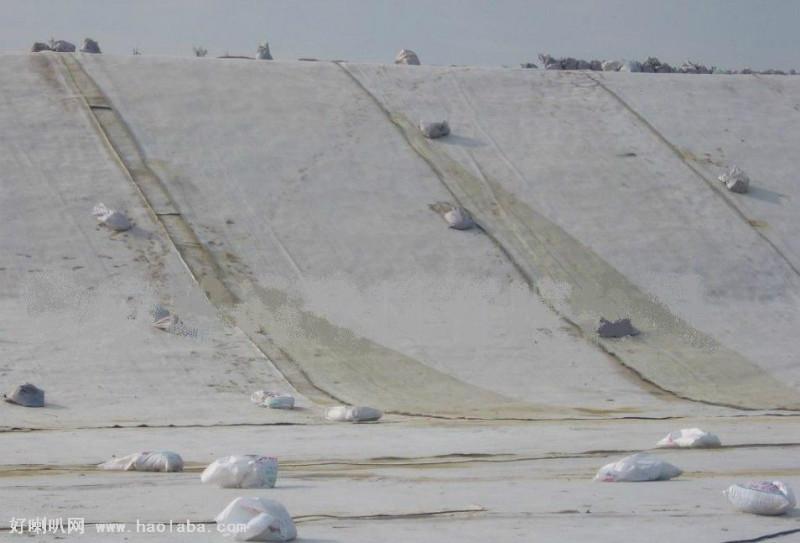 施工步驟.應從底部向高位延伸,不要拉得太緊,應留有1.50%的余幅,以備局部下沉拉伸?紤]到本工程的實際情況,邊坡采取從上到下的鋪設順序;