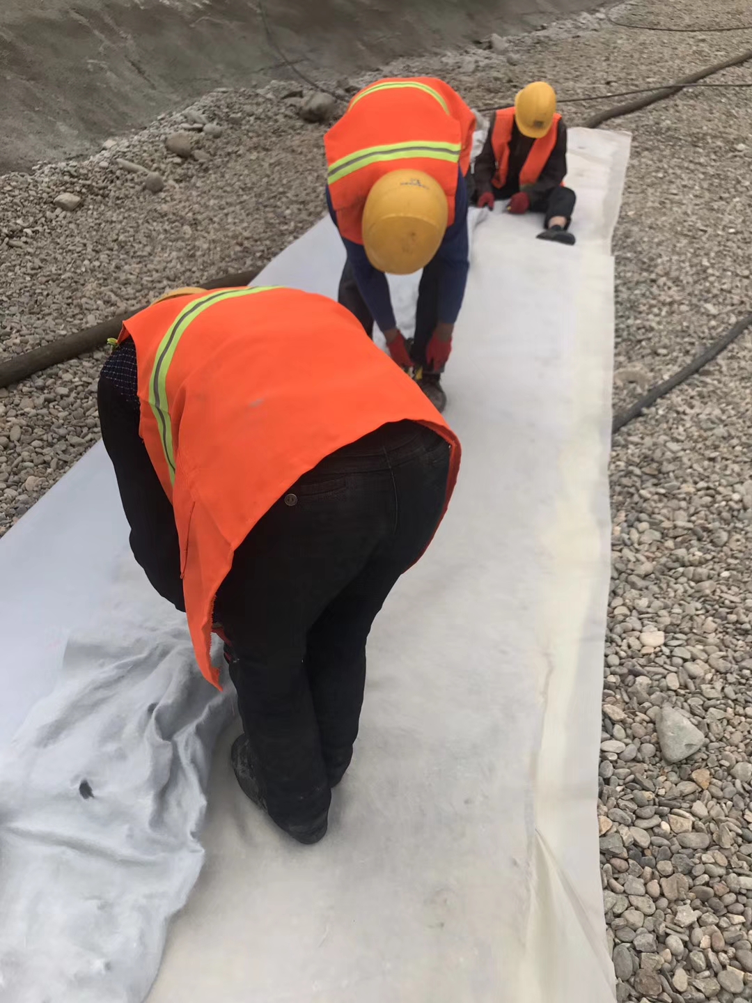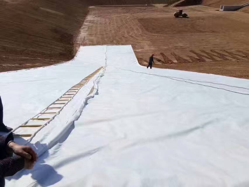 施工步驟.應從底部向高位延伸,不要拉得太緊,應留有1.50%的余幅,以備局部下沉拉伸。考慮到本工程的實際情況,邊坡采取從上到下的鋪設順序;